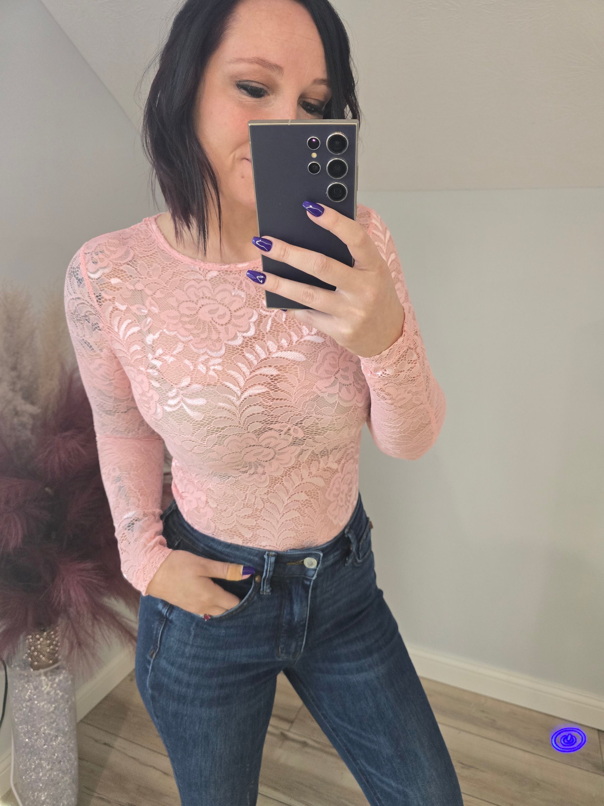 Blush Floral Lace Sheer Top
