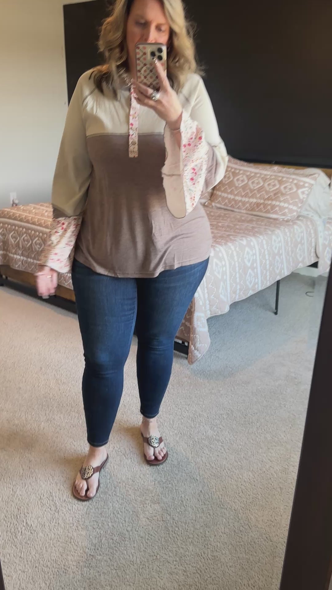 Add some flair to your everyday outfit with the Boho Floral Bell Sleeve Henley Top! Its trendy colorblock design is complemented by delightful floral patchwork details. Embrace your inner bohemian with flared sleeves, adding a fun twist to your ensemble that's effortlessly cool. This top is crafted from top-notch materials, ensuring long-lasting comfort and style for seasons to come. The Henley neckline adds a touch of sophistication, making this top perfect for any occasion, whether it's a casual day out or a more dressed-up event. The options are endless!