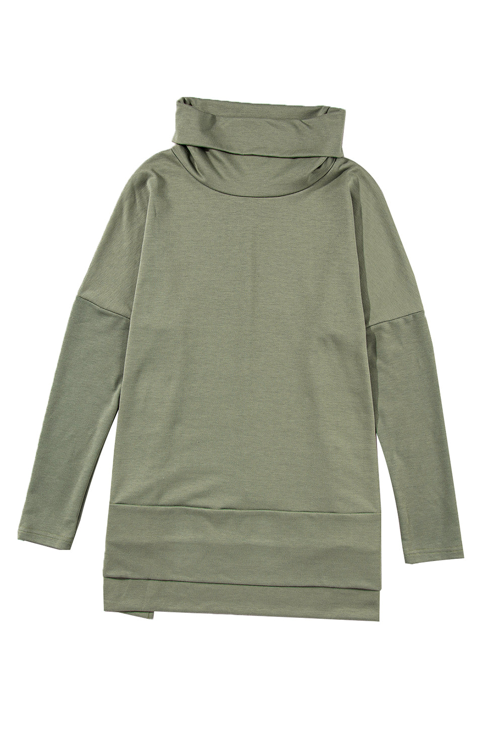 Bring your fashion game to new heights with this adaptable gray tunic shirt, ideal for rocking solo or layering up for extra cozy vibes. Made with comfy and light fabric, it promises a snug fit. Featuring a comfy cowl neckline, long sleeves, and a roomy shape that complements any figure, this design definitely stands out. Plus, check out the funky straight hemline with funky side slits to add some pizazz to your outfit.