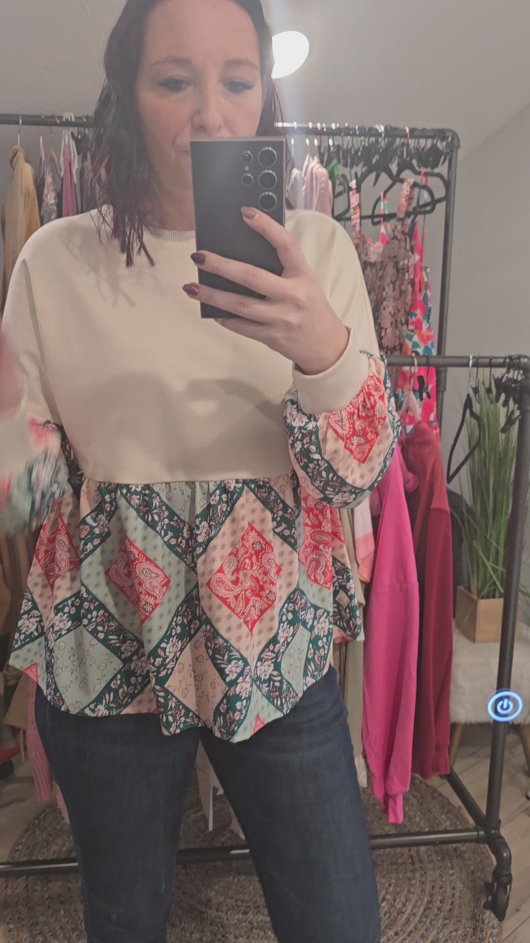 Cream Geometric Peplum Top