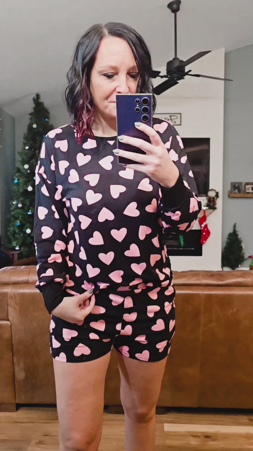Unwind in cozy comfort with our Heart Shape Print Loungewear Set! Made from soft materials, this set provides a relaxed feel against the skin. Perfect for lounging at home or as a cute sleepwear option. The matching top and shorts make for a put-together look, ideal for casual outings too!