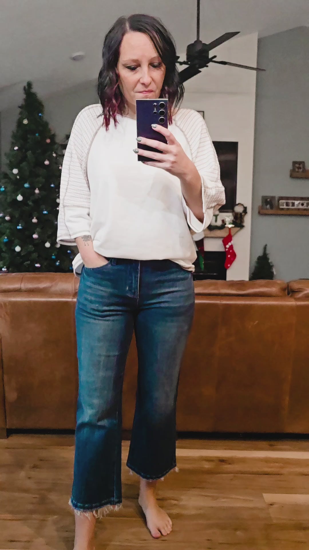 Jordin is 5'7" 150 pounds wearing a size 4. She wear a size 1 in Judy Blue. If between sizes, we suggest going with your larger size.