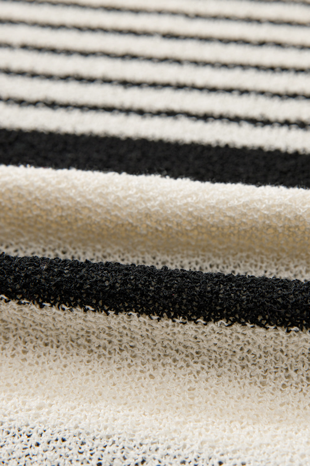 Get ready to fall in love with this playful black and white striped top, featuring a stylish ribbed design. It's the perfect lightweight and breathable option for layering or warm-weather wear. Plus, it's so versatile that you can easily pair it with jeans or blazers for any occasion. Made from super soft, stretchy materials, you'll be comfortable and stylish all day long!