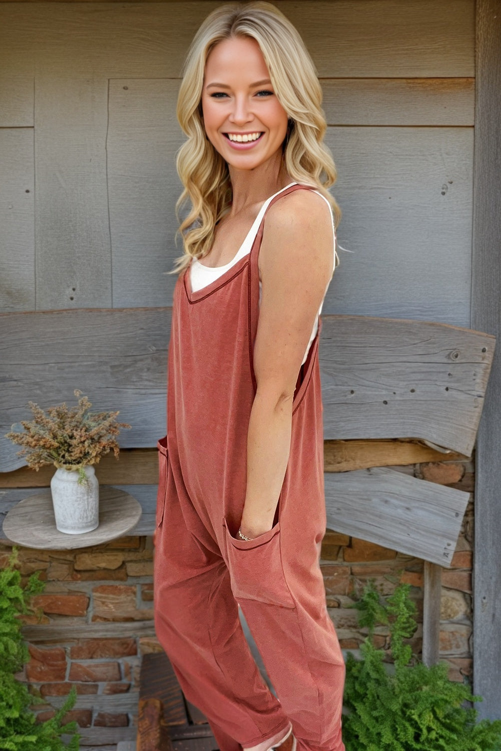 This jumpsuit features a single solid hue for a sleek, no-fuss vibe. Its loose fit offers a laid-back, comfy shape that’s perfect for chilling out or stepping out. The simple color makes it a breeze to style—dress it up or down with your favorite shoes and accessories.