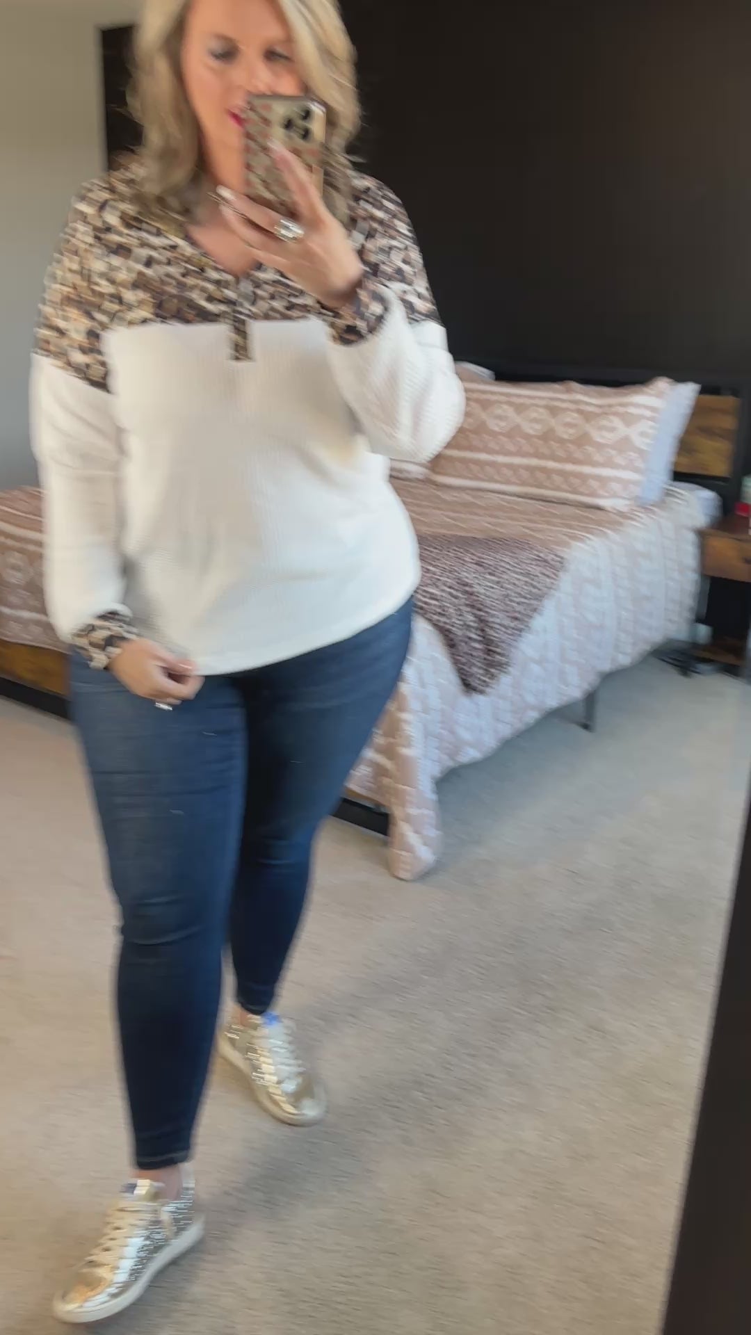 White Leopard Waffle Knit Top